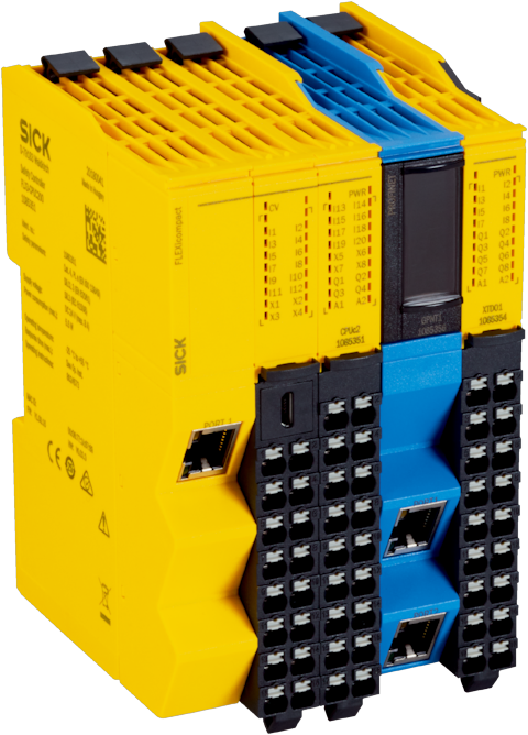 El controlador de seguridad Flexi Compact está basado en una plataforma tecnológica orientada al futuro y puede programarse mediante software. Gracias a su modularidad, se adapta perfectamente a los más diversos requisitos de aplicación y se integra en poco espacio gracias a su diseño compacto. Flexi Compact destaca por una alta usabilidad: la planificación del proyecto y la puesta en servicio se realizan de forma rápida y sencilla con el intuitivo software de configuración Safety Designer y una carcasa muy fácil de usar. Los datos de diagnóstico están disponibles para los sistemas de bus de campo más comunes. Un arranque rápido de la producción, una elevada disponibilidad de la máquina y unas funciones ampliadas, como la conexión de sensores en cascada segura con Flexi Loop, aumentan la productividad y la eficiencia en el ciclo de vida de la máquina.